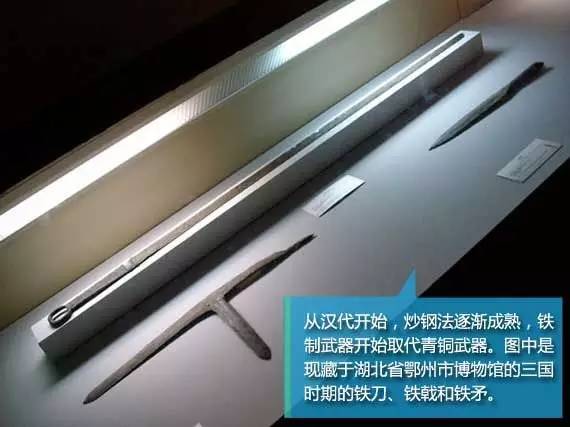 图中这些铁质兵器均为三国时期的吴国制造,可见当时冶铁技术已非常成熟,铁质兵器得到普遍使用,形制上也产生了铁刀、铁戟、铁矛、铁镞等等,铁已经完全取代了青铜的地位,人类历史进入了铁器时代。