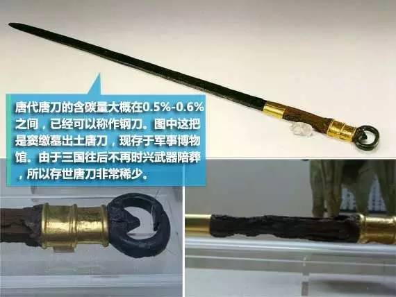 到了唐代,其实冶炼和锻打方法没有非常明显的改变,通过日积月累的经验,铁匠们已经可以控制铁制品内部的含碳量。像有代表性的唐刀的含碳量大约在0.5%-0.6%之间,这个碳含量已经属于钢的范畴。含碳量得到控制使唐刀兼顾韧性和硬度,这也是唐刀名扬海外的原因之一。其实今天的钢铁冶炼中最基础的部分也是控制含碳量,根据用途不同调整含碳量以调整钢的韧性和硬度这两个主要性质。当然,古人为了使刀剑同时具备韧和硬发明了包钢、夹钢等制作工艺,这已不在本文讨论范围。