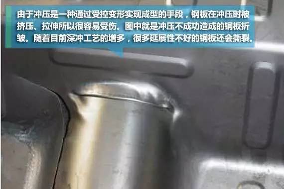 材料强度上去了带来的问题是难以加工。一般轿车都是采用冲压的方法制造,即用模具挤压材料成型,类似于玩培乐多彩泥。现在车用钢板强度高了就对冲压工艺要求更高,而且现在深冲部件很多,材料容易出现裂纹和折皱。