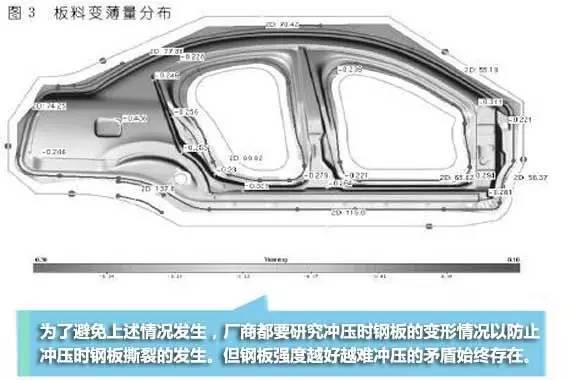 所以生产厂家都会研究冲压时钢板的内部应力情况,尽量消除内部积累的应力。同时对于大面积冲压件的厚度研究可以知道钢板那些部位拉伸比较严重,多大冲深可以保证钢板不撕裂。