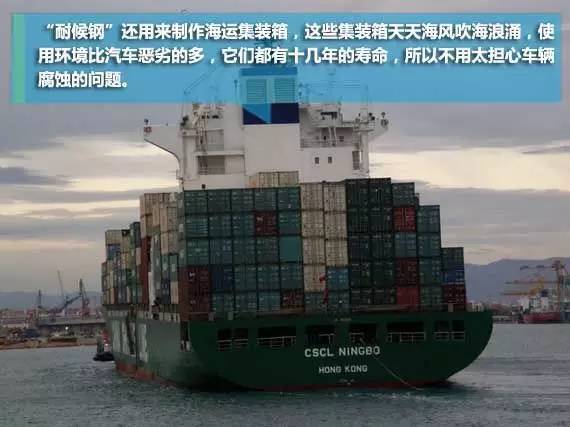 另外一个实例是集装箱,使用耐候钢制造的集装箱也没有汽车这么复杂的镀锌、电泳底漆、多层喷涂表漆等等,在其生命周期中每天都要经历海风、海水、盐雾的腐蚀,使用环境比汽车恶劣的多,这些集装箱使用十几年也都不成问题,很多集装箱十几年后经过翻新还能继续用。